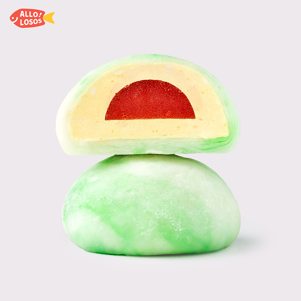Японський десерт із ніжним сиром у поєднанні солодкого джему кавуна та лимону, вершків та білого шоколаду 1 шт.