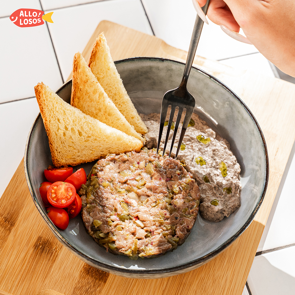 Говядина маринованная, корнишоны, перец халапенье, перец чили, Соус "Вустерширский", лук красный, грибной мусс, горчица, хлеб.Каллорий: ~473 ккалБелки: ~30 гЖири: ~20 гУглеводы: ~39 г